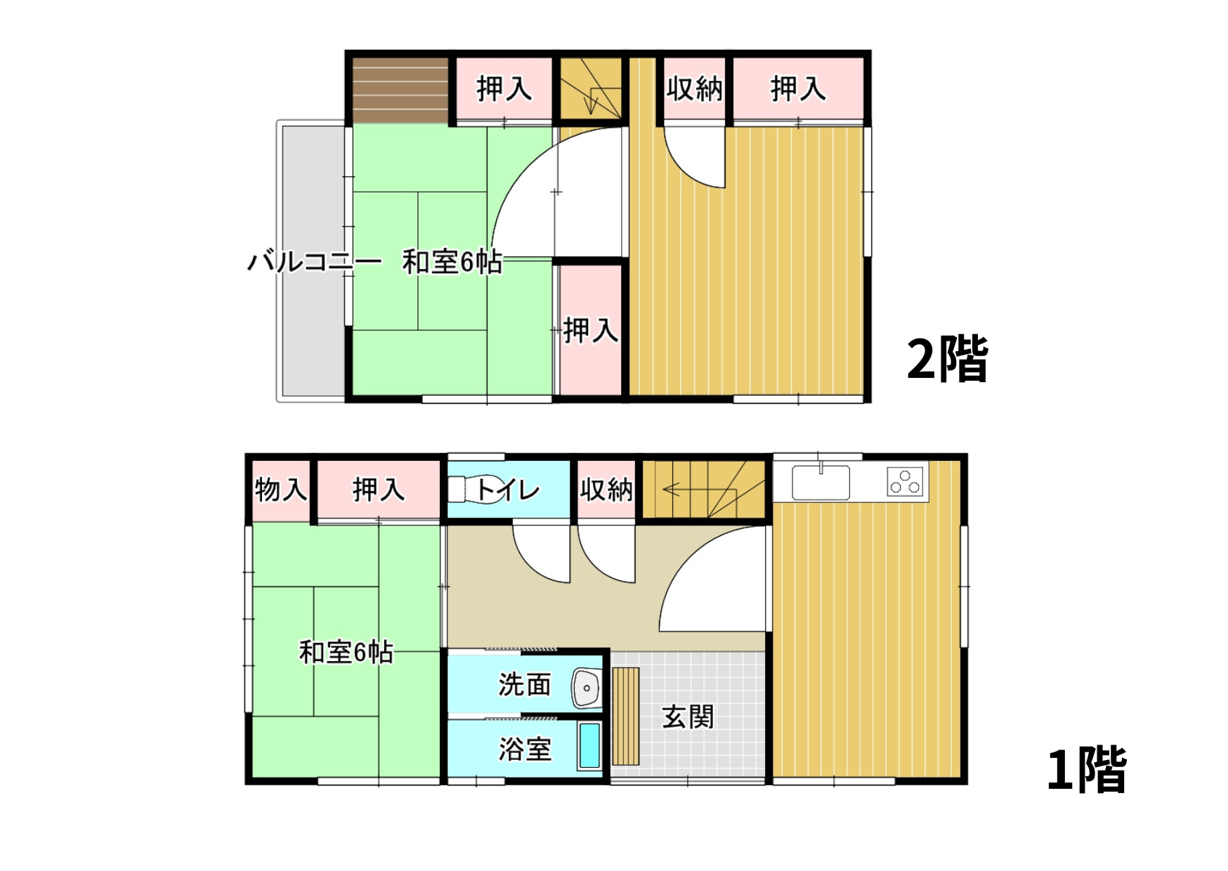 所在地 新宮市新宮字砂羅 間取り 3DK 建物面積 1階:37.26㎡ 2階:29.81㎡ 土地面積 76.81㎡(23.24坪) 建物構造 木造瓦葺2階建 築年数 昭和61年6月